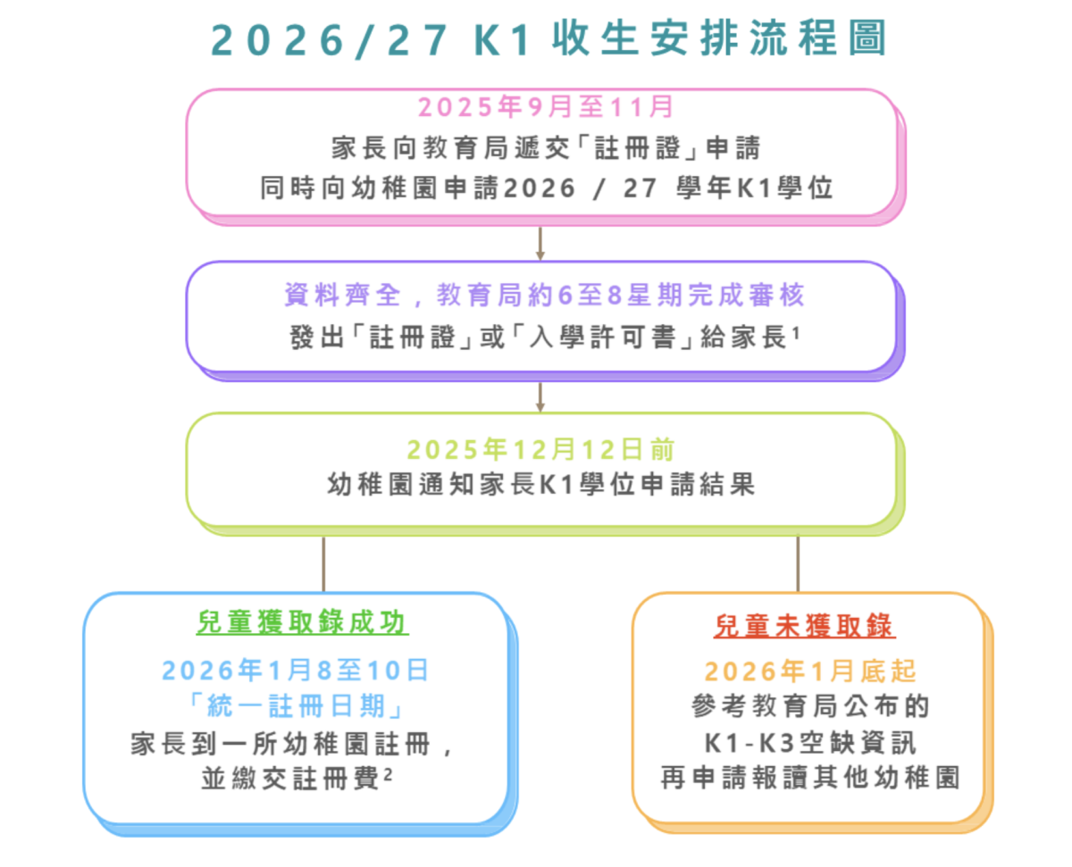 教育局:2026/27 學年幼稚園幼兒班(K1)收生安排
